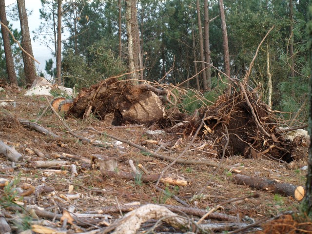 Restos do pasado temporal no monte Torroso esta e unha das moitas arbores caidas .